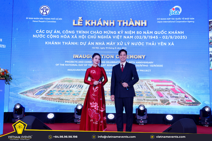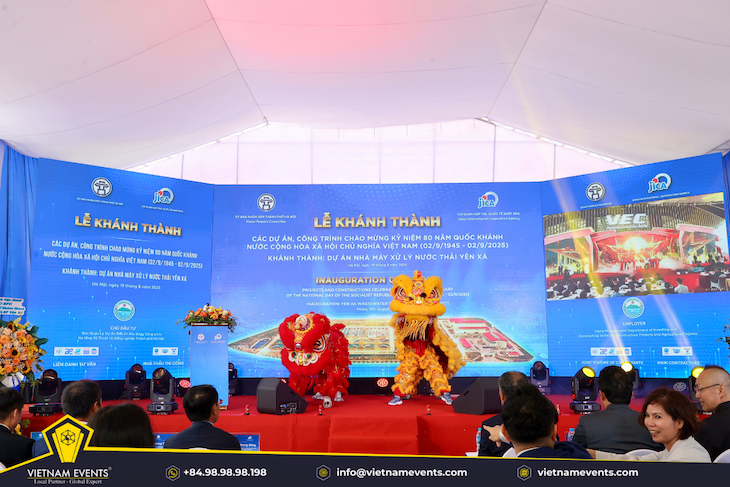 Sự kiện được VietnamEvents triển khai với quy mô chuyên nghiệp, từ khâu thi công sân khấu, âm thanh – ánh sáng, màn hình LED, nhân sự điều phối cho đến nghi thức khánh thành. Từng chi tiết đều được thực hiện chỉn chu, góp phần tạo nên một dấu ấn quan trọng trong hành trình phát triển bền vững của Thủ đô Hà Nội.