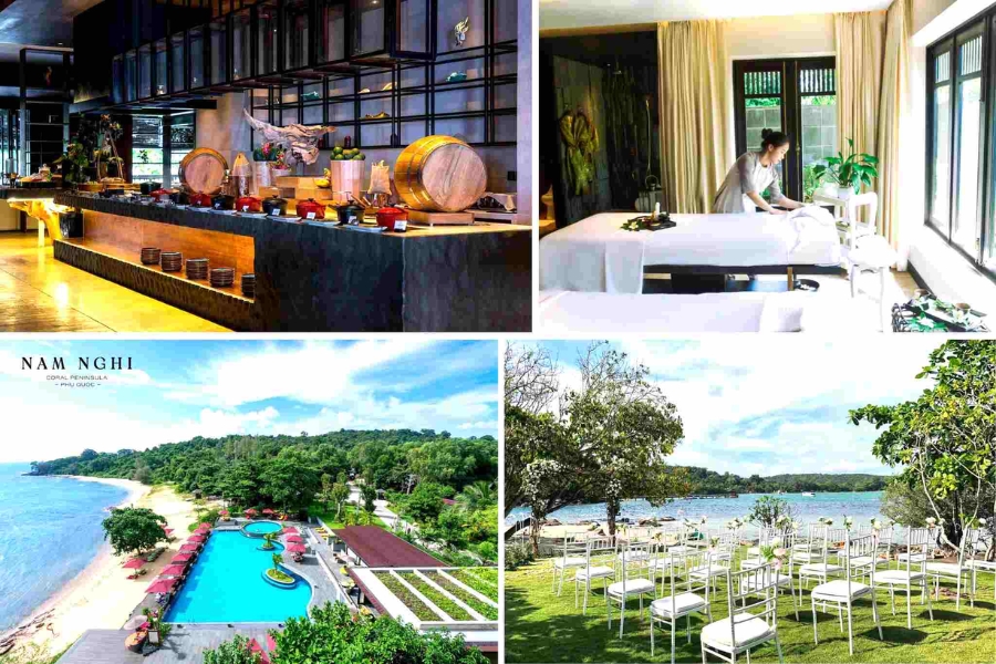 Trốn khỏi sự ồn ào và tìm đến thiên đường riêng tư tại Nam Nghi Coral Peninsula Resort cho ngày trọng đại của bạn. Nằm trên bán đảo yên tĩnh với tầm nhìn biển bao la, khu nghỉ dưỡng này mang đến một không gian thanh bình tuyệt đối. Bạn có thể lựa chọn giữa những sảnh tiệc trang nhã hoặc những khung cảnh ngoài trời tuyệt đẹp giữa thảm thực vật xanh tươi và bờ biển hoang sơ. Hãy tận hưởng dịch vụ hoàn hảo và tạo nên những kỷ niệm khó quên tại viên ngọc ẩn mình này.