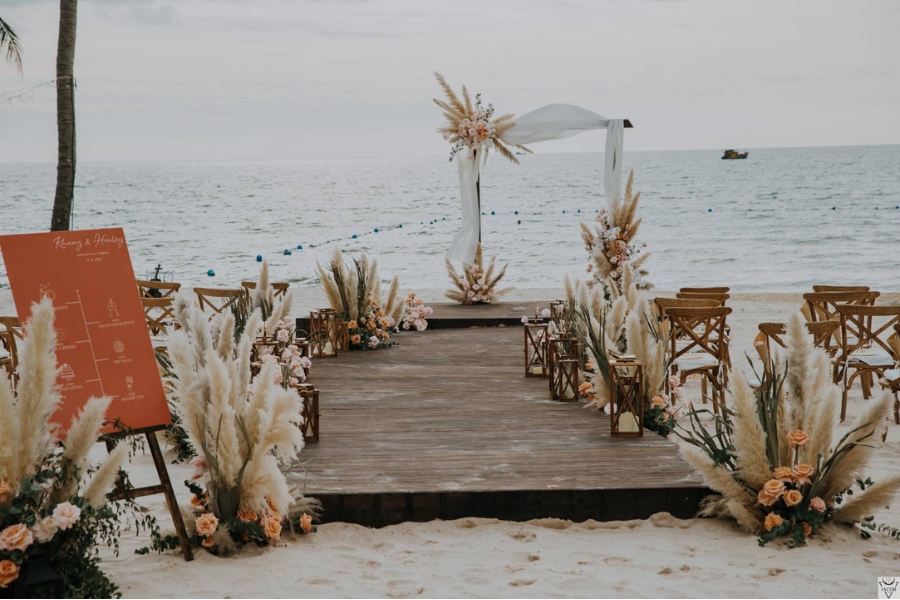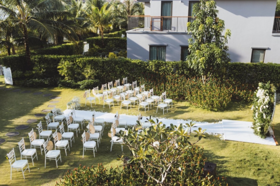 Nếu bạn trót yêu một đám cưới mang phong cách mộc mạc, ấm áp và đầy chất thơ, Cassia Cottage chính là nơi bạn thuộc về. Không gian nơi đây không lộng lẫy như những lễ đường truyền thống, mà mang vẻ đẹp dịu dàng của sân vườn xanh mát, bãi biển riêng tư và phong cách đồng quê tinh tế. Tiệc cưới tại Cassia Cottage thường được tổ chức ngoài trời, nơi bạn có thể trao nhau lời nguyện ước dưới ánh hoàng hôn rực rỡ, bên bờ biển yên bình. Từng chi tiết nhỏ nhất, từ bàn ghế gỗ đến đèn lồng và hoa lá, đều được chăm chút theo phong cách vintage lãng mạn, tạo nên một bầu không khí thân mật và đáng nhớ.