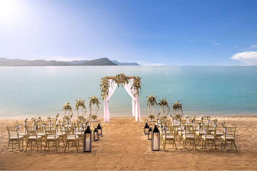 Nếu bạn đang tìm kiếm một không gian cưới đẳng cấp quốc tế tại Phú Quốc, Regent Phú Quốc chắc chắn sẽ không làm bạn thất vọng. Với thiết kế sang trọng, tinh tế và vị trí riêng tư bên bờ biển Bãi Trường, nơi đây hứa hẹn một đám cưới trong mơ đầy ấn tượng. Khu nghỉ dưỡng còn mang đến những dịch vụ spa thư giãn và các biệt thự nghỉ dưỡng cao cấp, giúp bạn và khách mời có những giây phút tận hưởng trọn vẹn.
