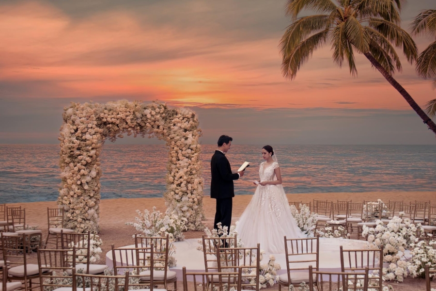 InterContinental Phu Quoc Long Beach Resort mang đến không gian tiệc cưới vừa thanh lịch, vừa hòa mình vào vẻ đẹp thiên nhiên, tạo nên một khung cảnh tuyệt vời cho hôn lễ trong mơ của bạn. Với nhiều lựa chọn địa điểm như bãi biển riêng tư, khu vực hồ bơi vô cực hay ballroom sang trọng, bạn có thể tùy chọn theo sở thích. Đội ngũ tổ chức sự kiện tận tâm sẽ hiện thực hóa mọi ý tưởng cưới của bạn, cùng với đó là thực đơn ẩm thực đặc sắc, kết hợp tinh tế hương vị Việt Nam và quốc tế. Hoàng hôn rực rỡ trên biển sẽ là món quà vô giá cho ngày hạnh phúc của bạn.