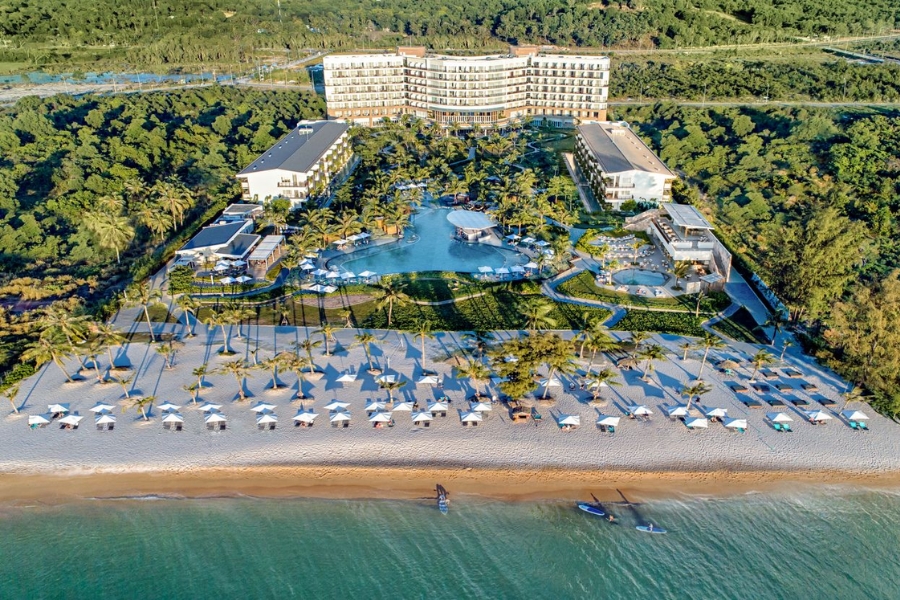 Là một trong những khu nghỉ dưỡng được yêu thích nhất tại Bãi Trường, Novotel Phú Quốc Resort mang đến không gian tiệc cưới thanh lịch, sang trọng nhưng vẫn giữ được sự ấm cúng và gần gũi. Với thiết kế đương đại hòa quyện cùng vẻ đẹp tự nhiên, khu nghỉ dưỡng này là lựa chọn lý tưởng cho những cặp đôi yêu thích sự tối giản mà vẫn tinh tế. Các không gian tiệc cưới tại Novotel rất đa dạng, từ bãi biển riêng tư, khu vườn xanh mát đến các phòng tiệc sang trọng với sức chứa lớn.